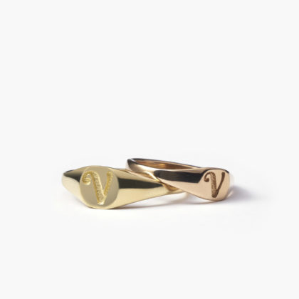 Shimmering, delicate rings with your personal engraved message. Design the signet rings of your dreams. Add a letter, two, or three, encode your ring with a secret.
