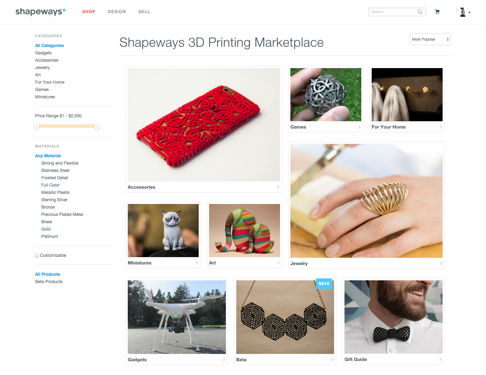 Today, we are proud to announce that we are further improving the way shoppers can discover great products on Shapeways. With improved sort capabilities, we’re offering a better way for shoppers to travel through our vast catalog and find products of interest.