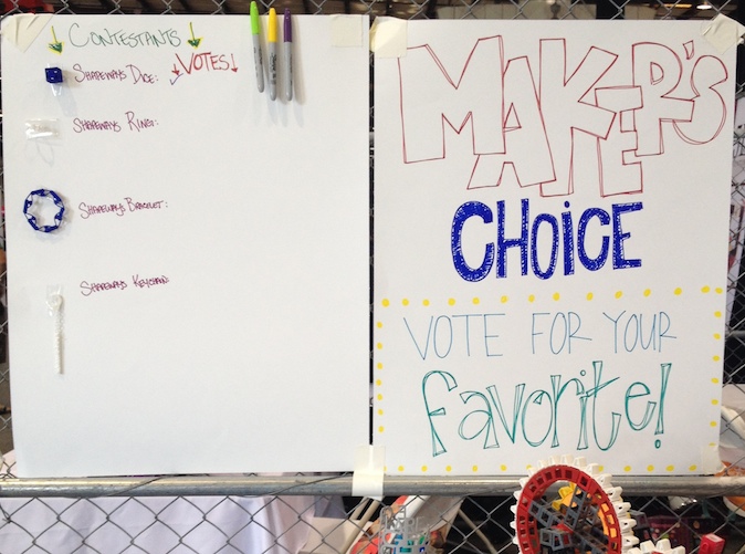 On Saturday, the fair opened with a cheer and people streamed in…and they didn’t stop till 6pm Sunday! Our booth was packed as people played with the material wall, cast their vote in our Swag Contest and entered their #ShapewaysSelfie pics to win store credits.